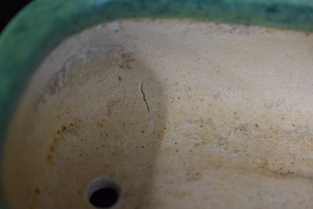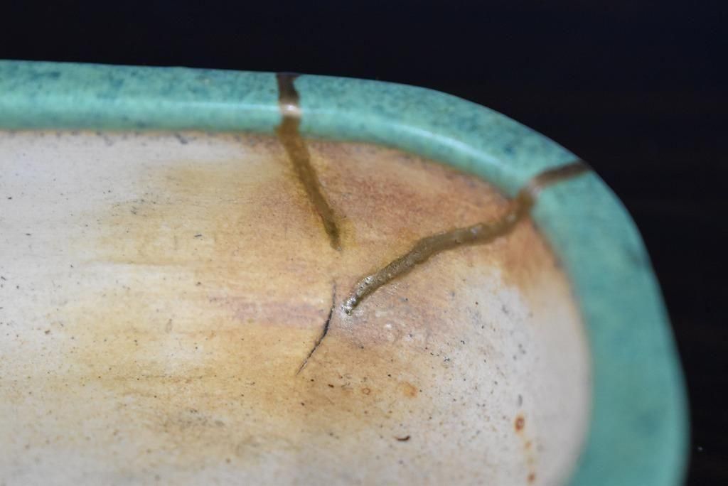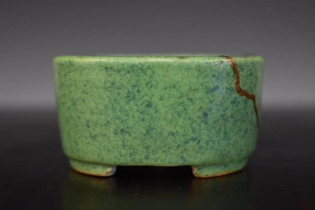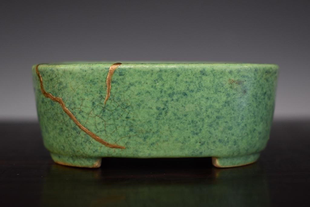 きれいな緑釉窯変。色が明るくて形も良い。金で直してあるのもアクセントになっている。
