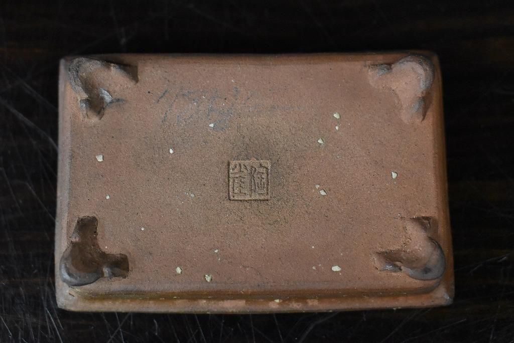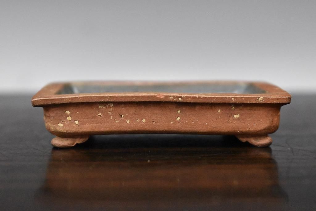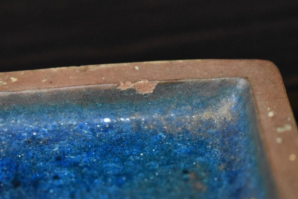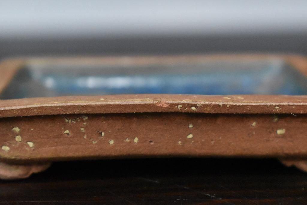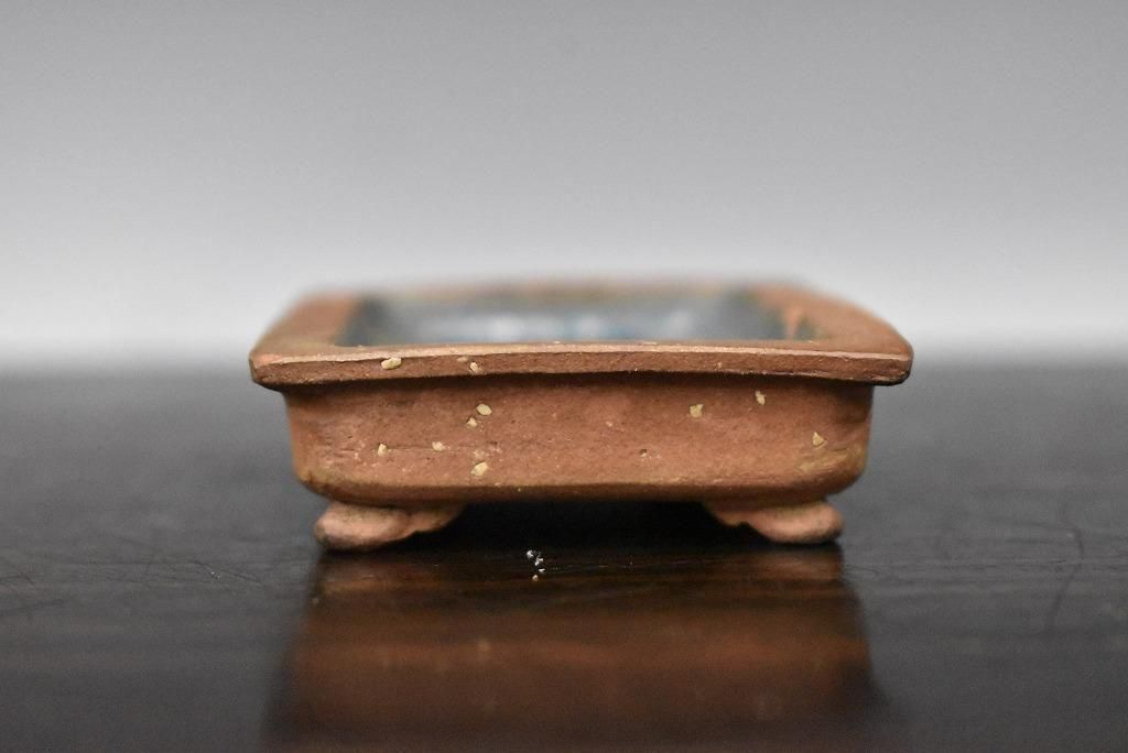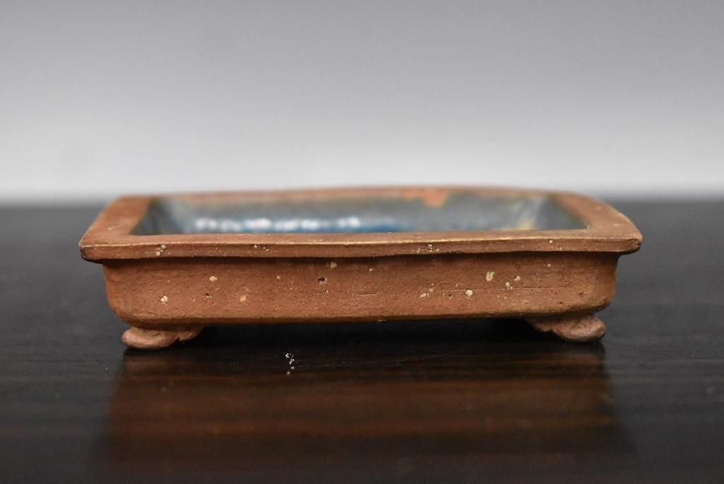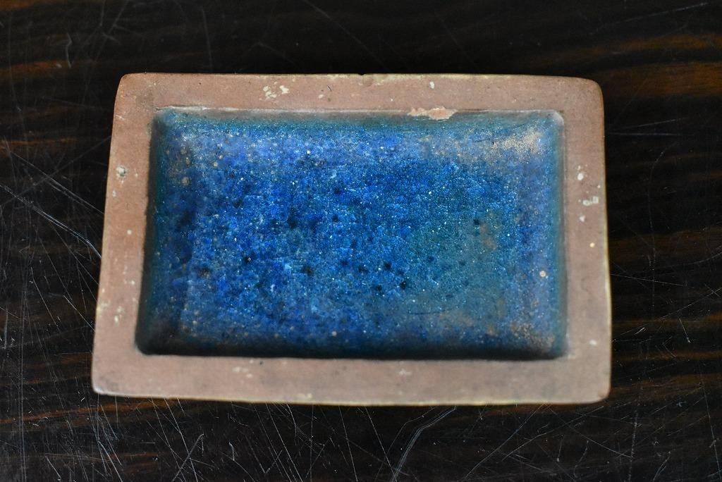 かわいい水盤。梨皮泥に瑠璃秞をかけている。思っているより小さい。