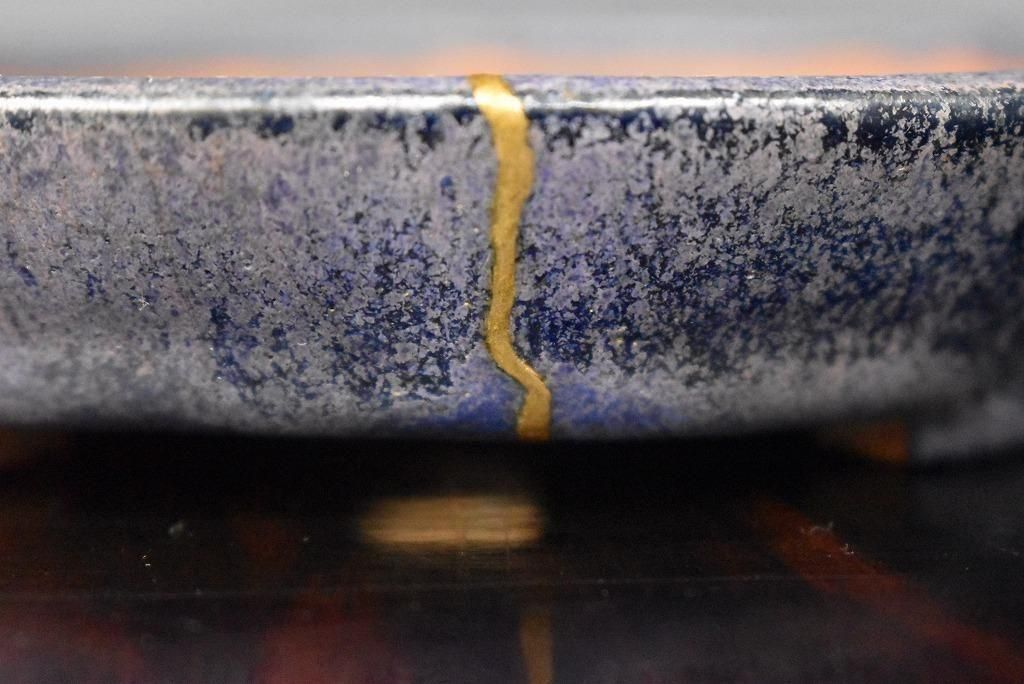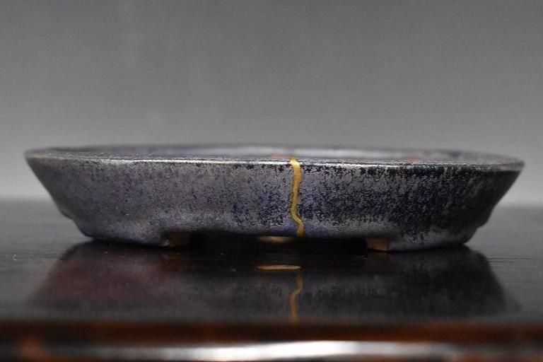 黒っぽい青に紫の窯変。この釉の東福寺は一定の数があり、ちょっと珍しい。