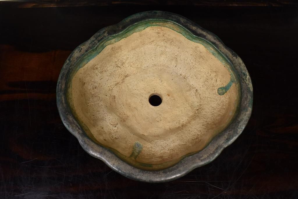 これだけ奥行きのある鉢も少ない。緑釉も良く使い勝手が良い。時代もあり、ウメモドキ、長寿梅などに合いそう。