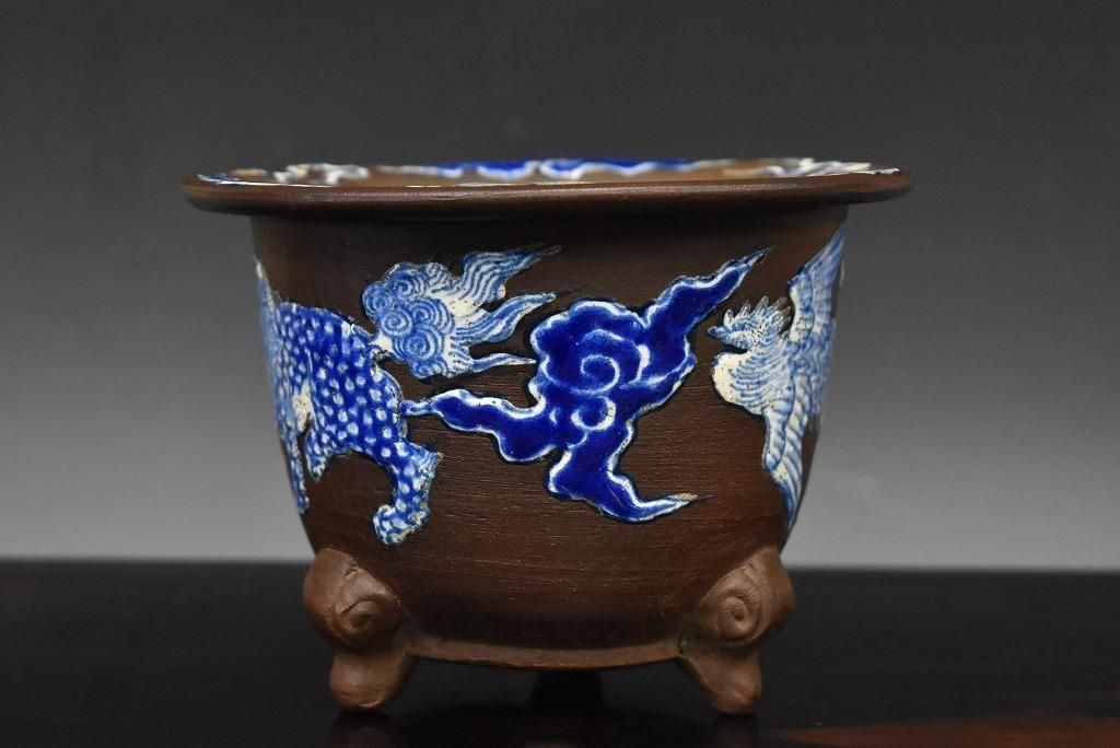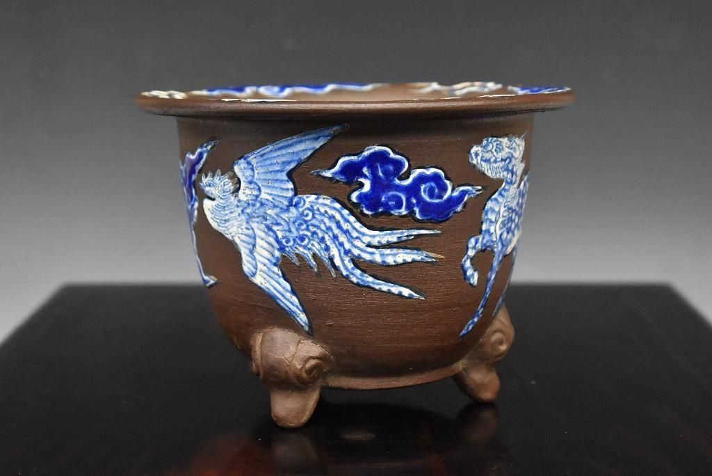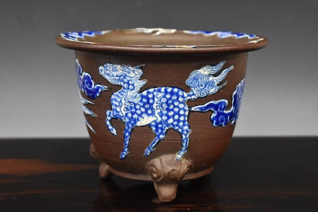 土目がすごく良く、瑠璃と白釉がすごく良い。麒麟や鳳凰など絵柄の構図も面白い。