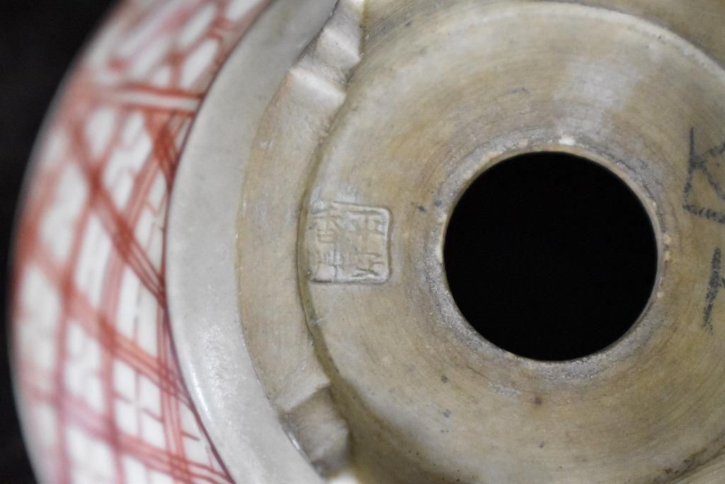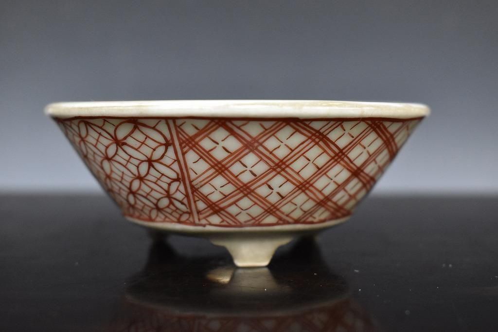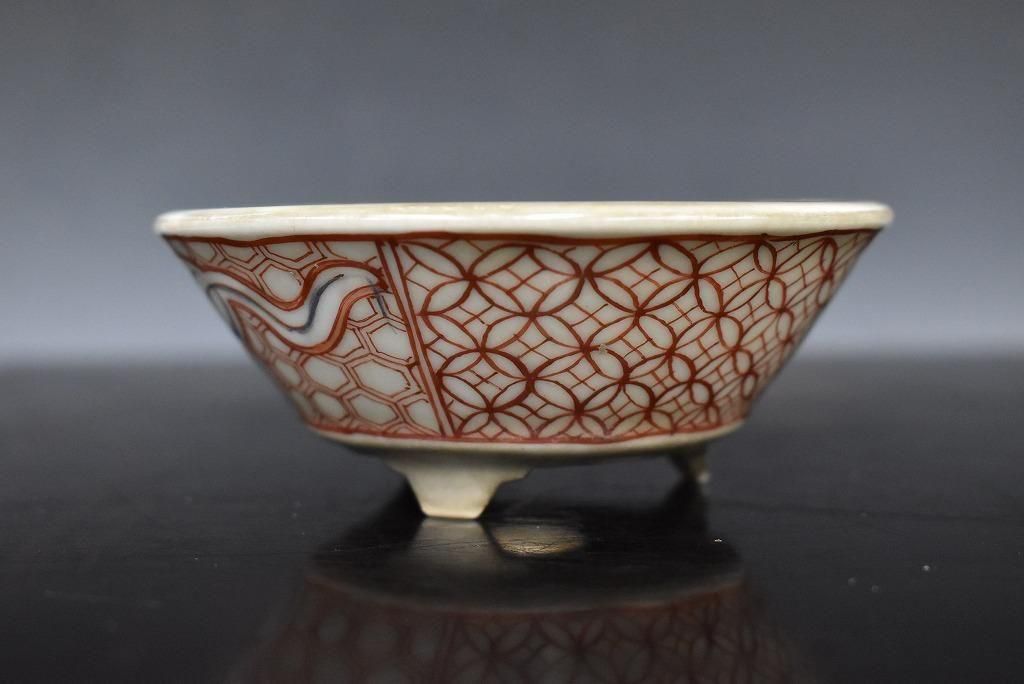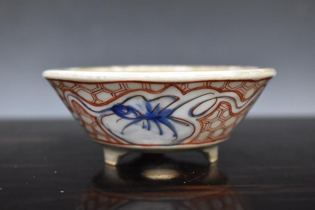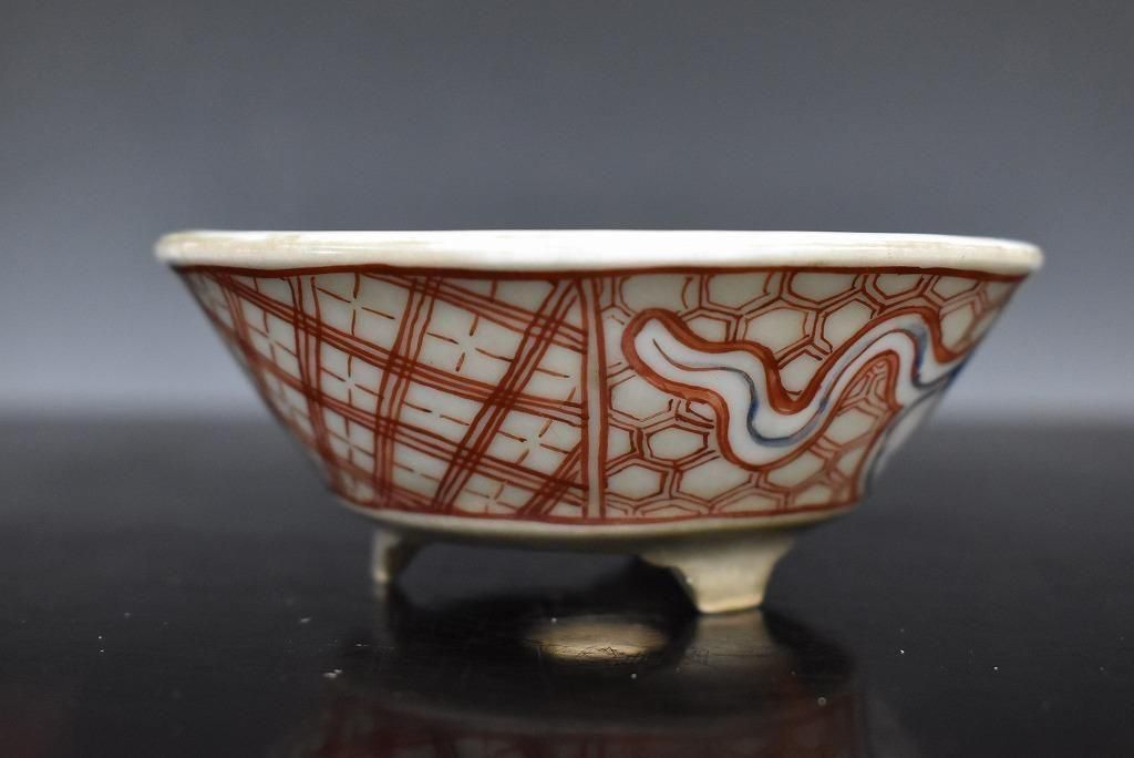 巾着が描かれている。赤絵の赤もきれい。時代もかっこよくのっている。質感がとても良い。