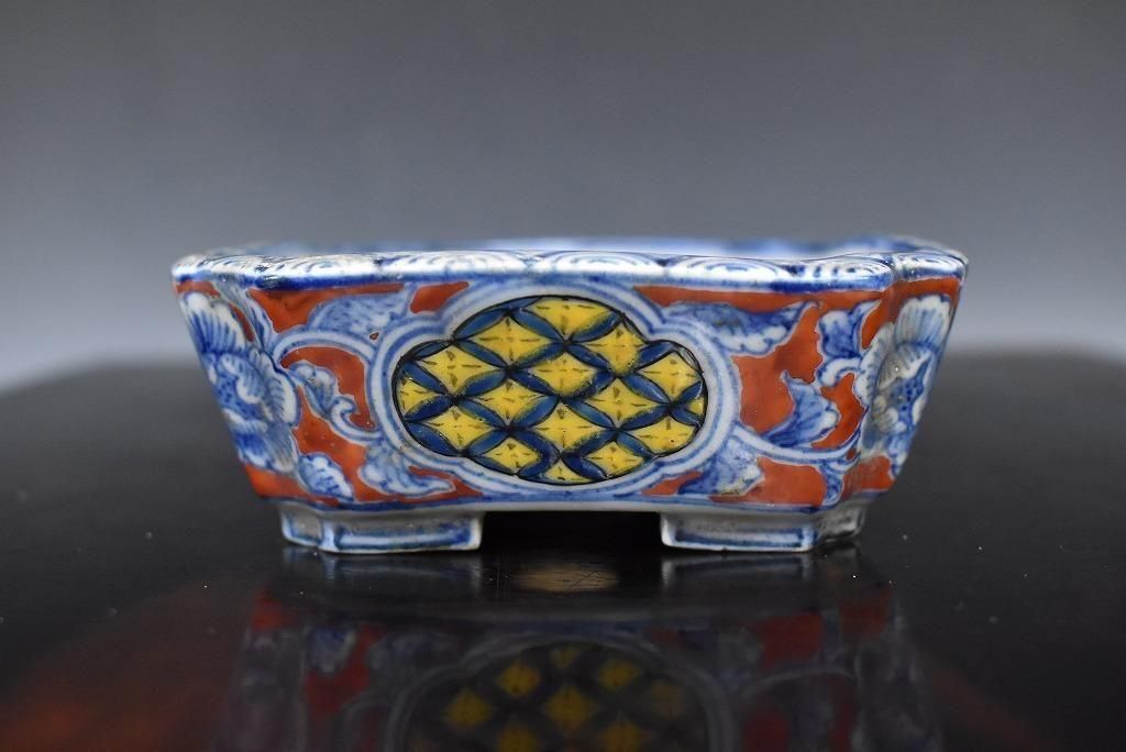 五彩の窓絵になっている。このくらい上手く作れるのなら他の鉢ももっと良く作ればと思う。