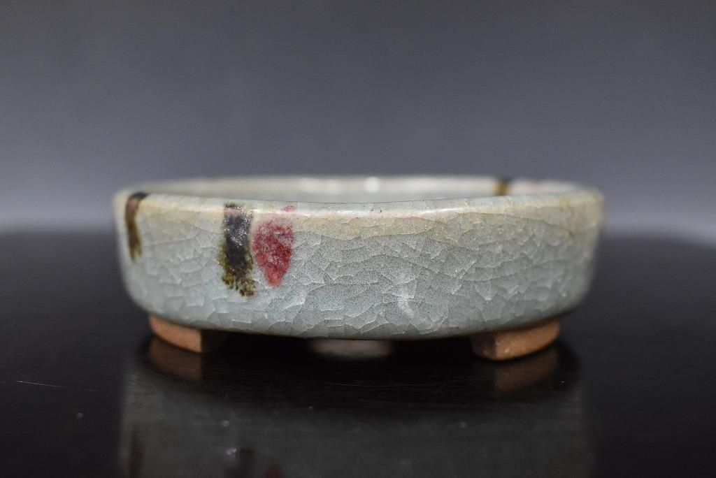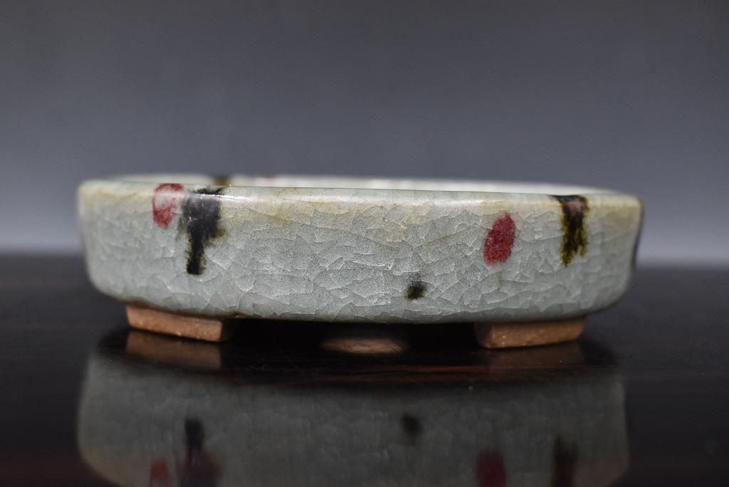青磁に飛び釉が。奥行きもあり使いやすそう。釉もかなりたっぷりめ。あたたかみがある。