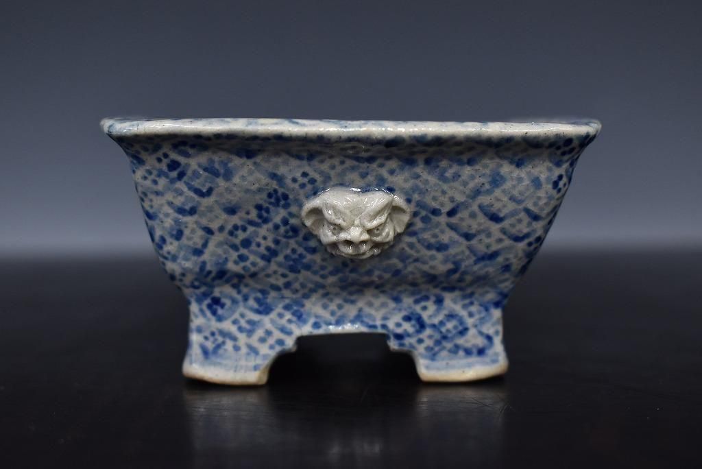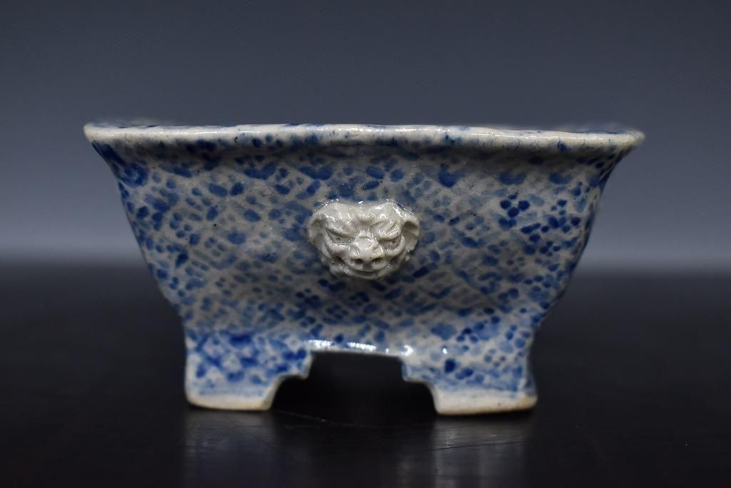 獅子が付いていて窓の形も良い。使って映える。この人の鉢では良い出来。