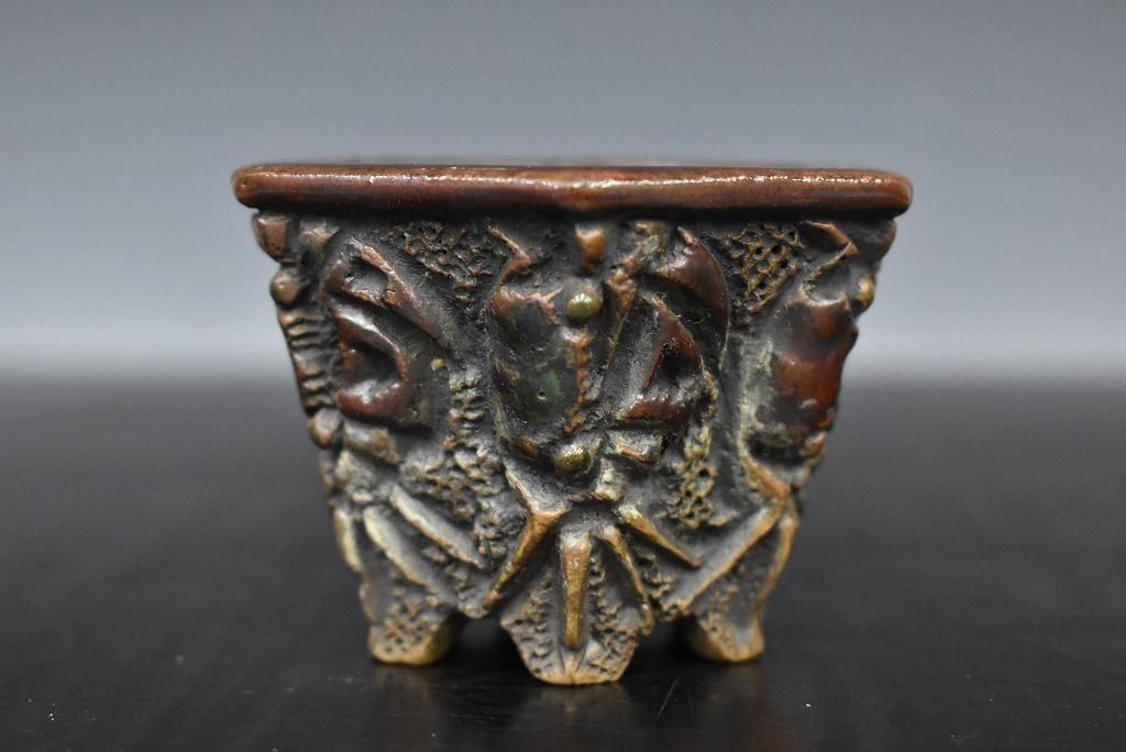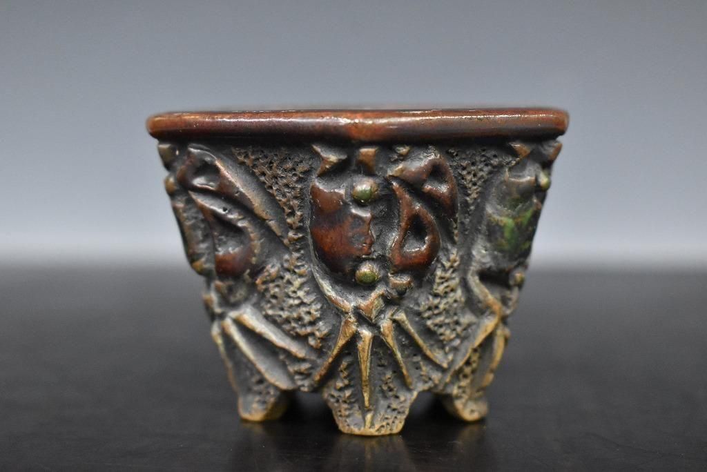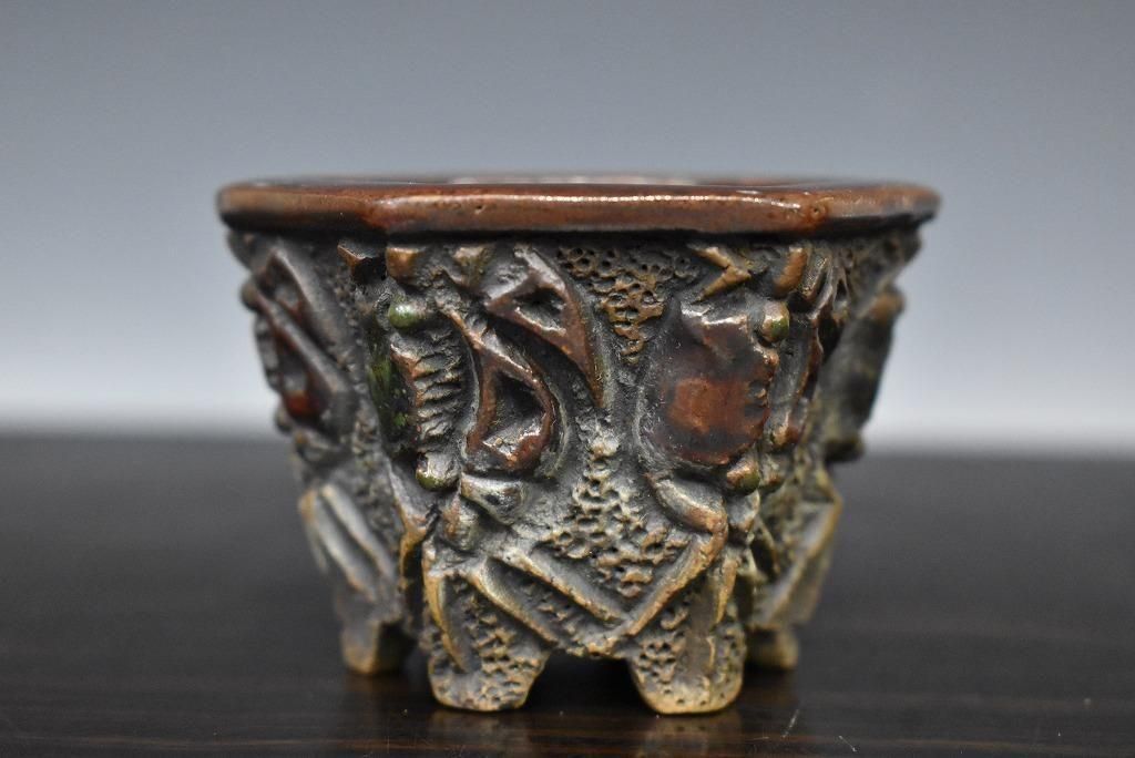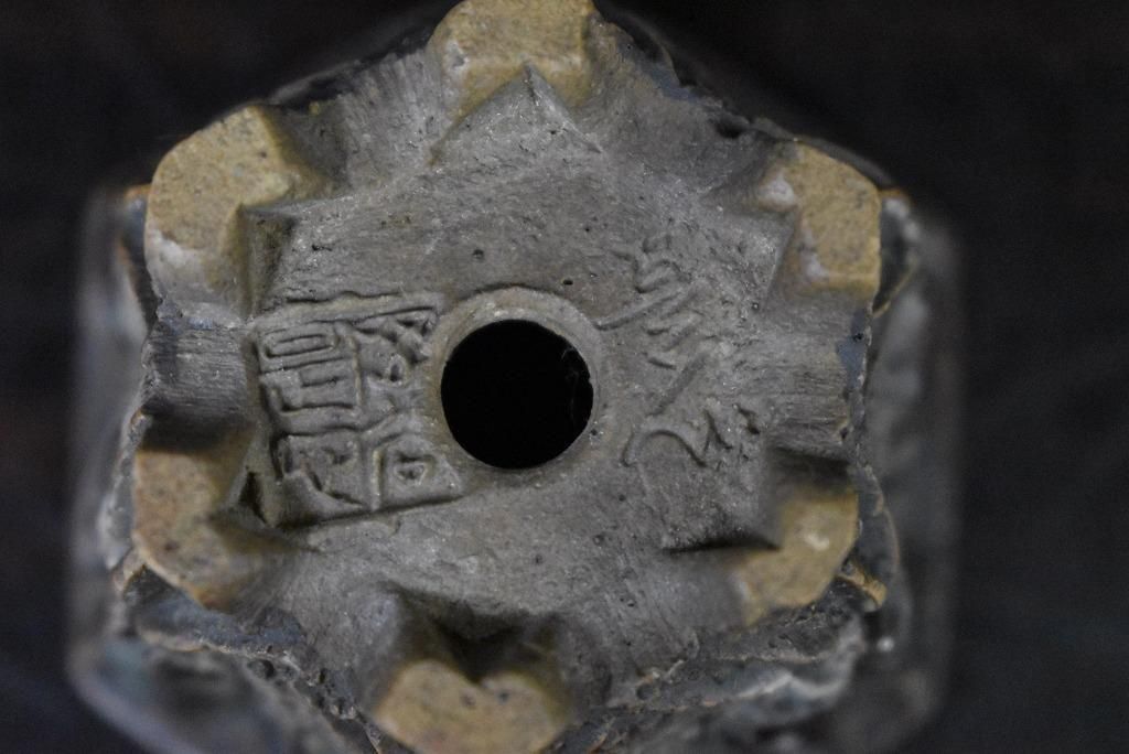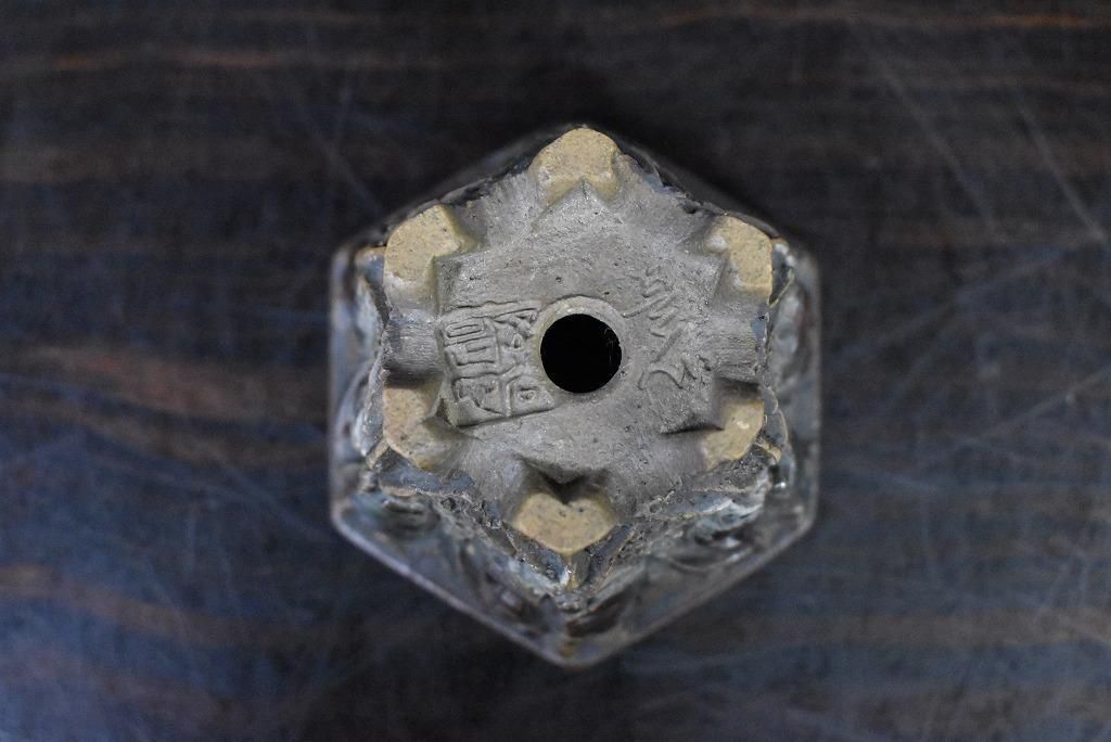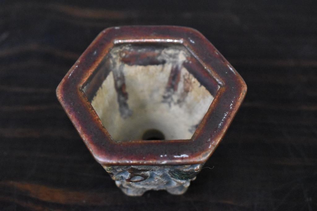 陶器じゃないみたいな質感。彫りも派手で形も六角で良い草に合いそう。